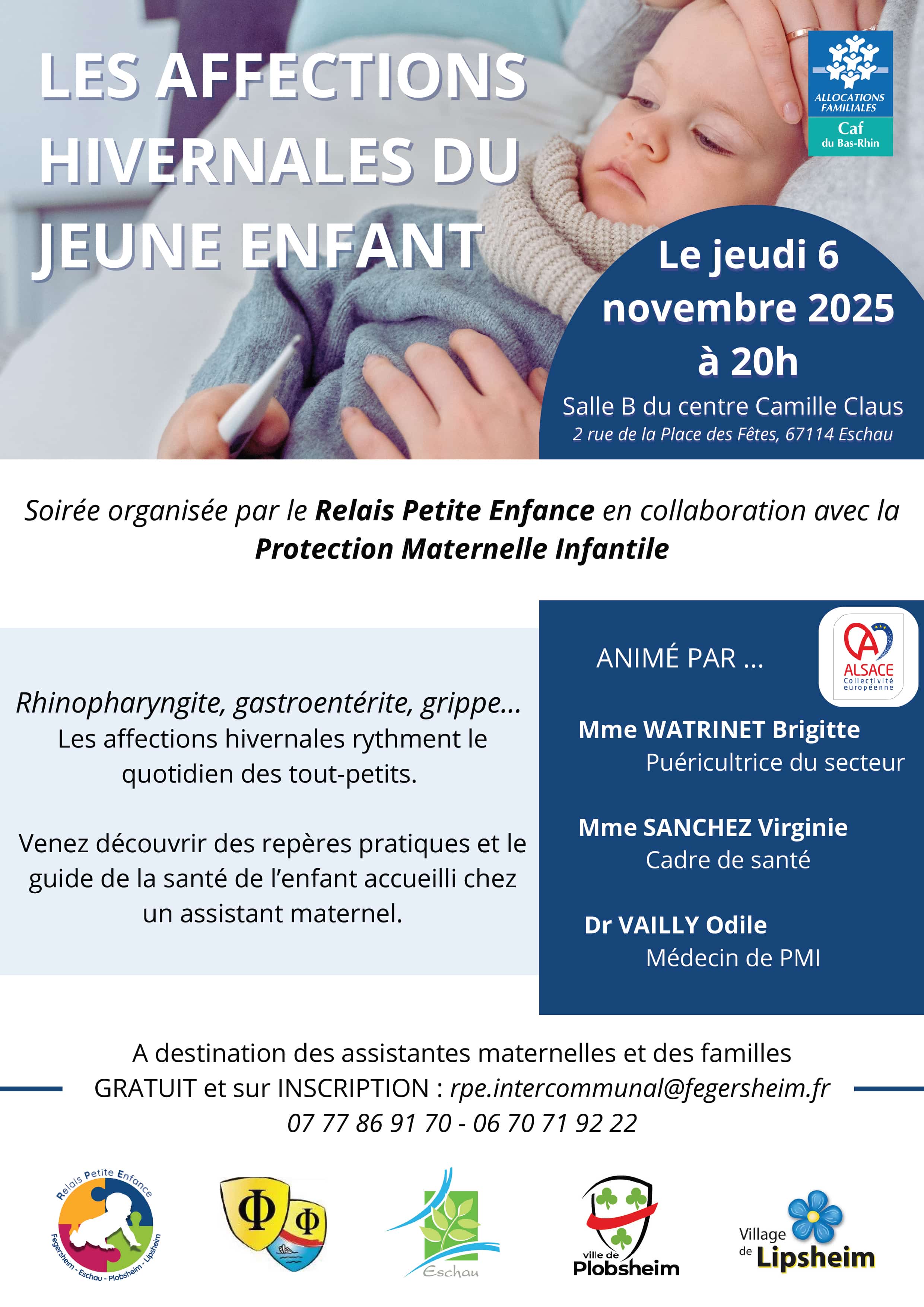 Le Relais Petite Enfance intercommunal vous invite à une soirée d’information et débat : Affections hivernales chez l’enfant accueilli chez une assistante maternelle