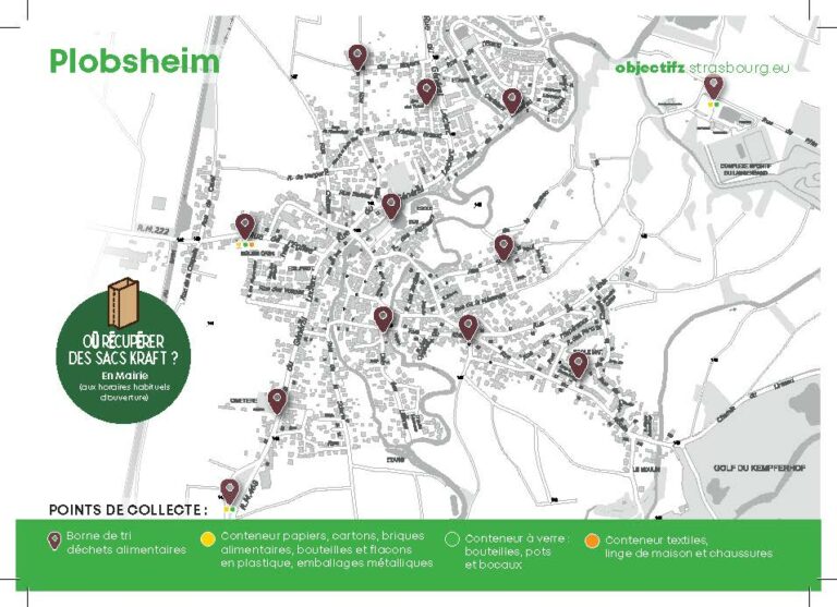 Une fois vos déchets alimentaires collectés dans votre sac en papier kraft, vous pourrez le déposer, bien fermé, dans la borne la plus proche de chez vous. Vous pouvez récupérer les sacs kraft en Mairie. A5_carte_biodechet_PLOBSHEIM_HD