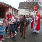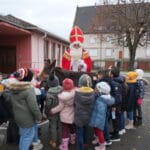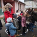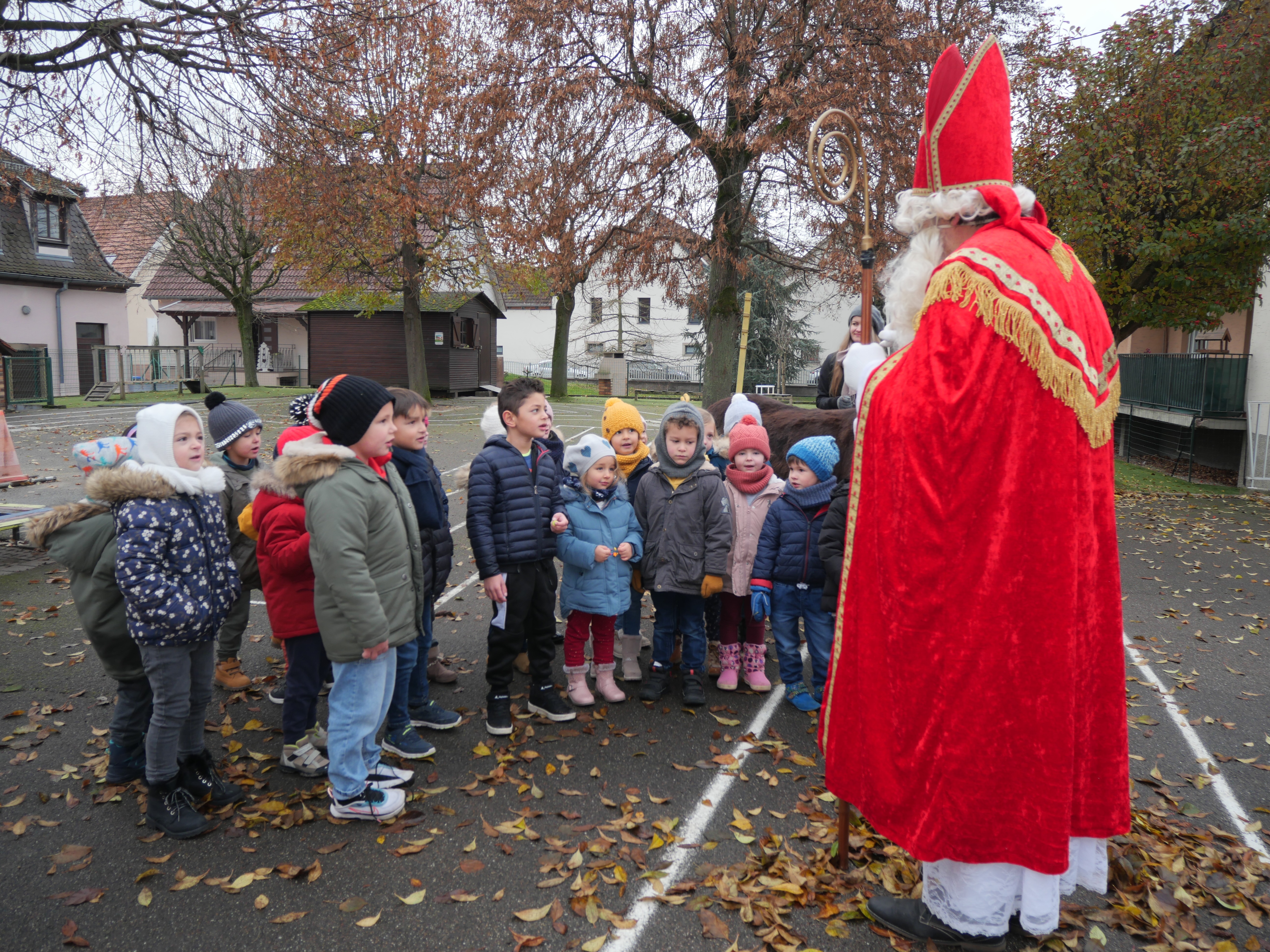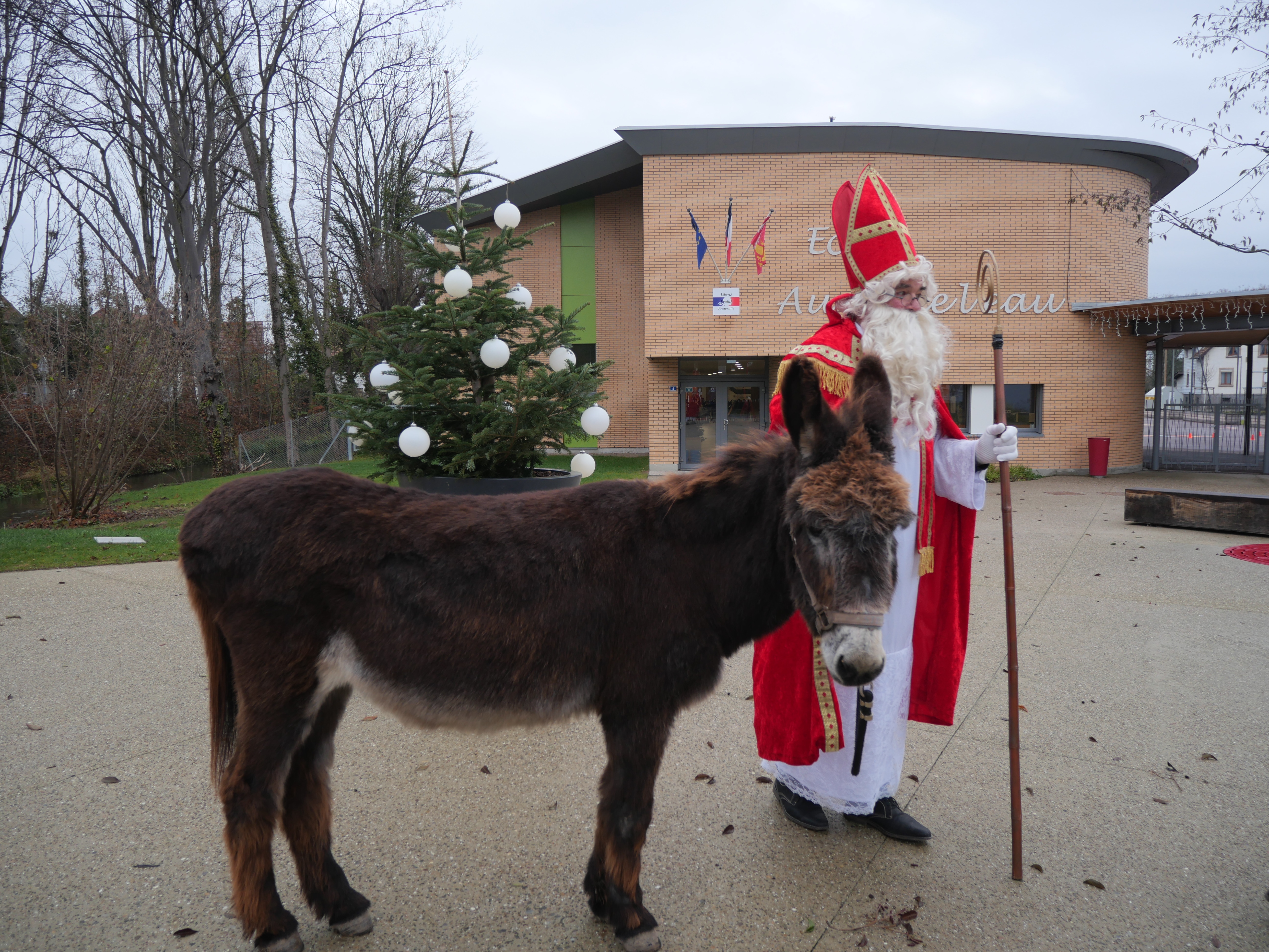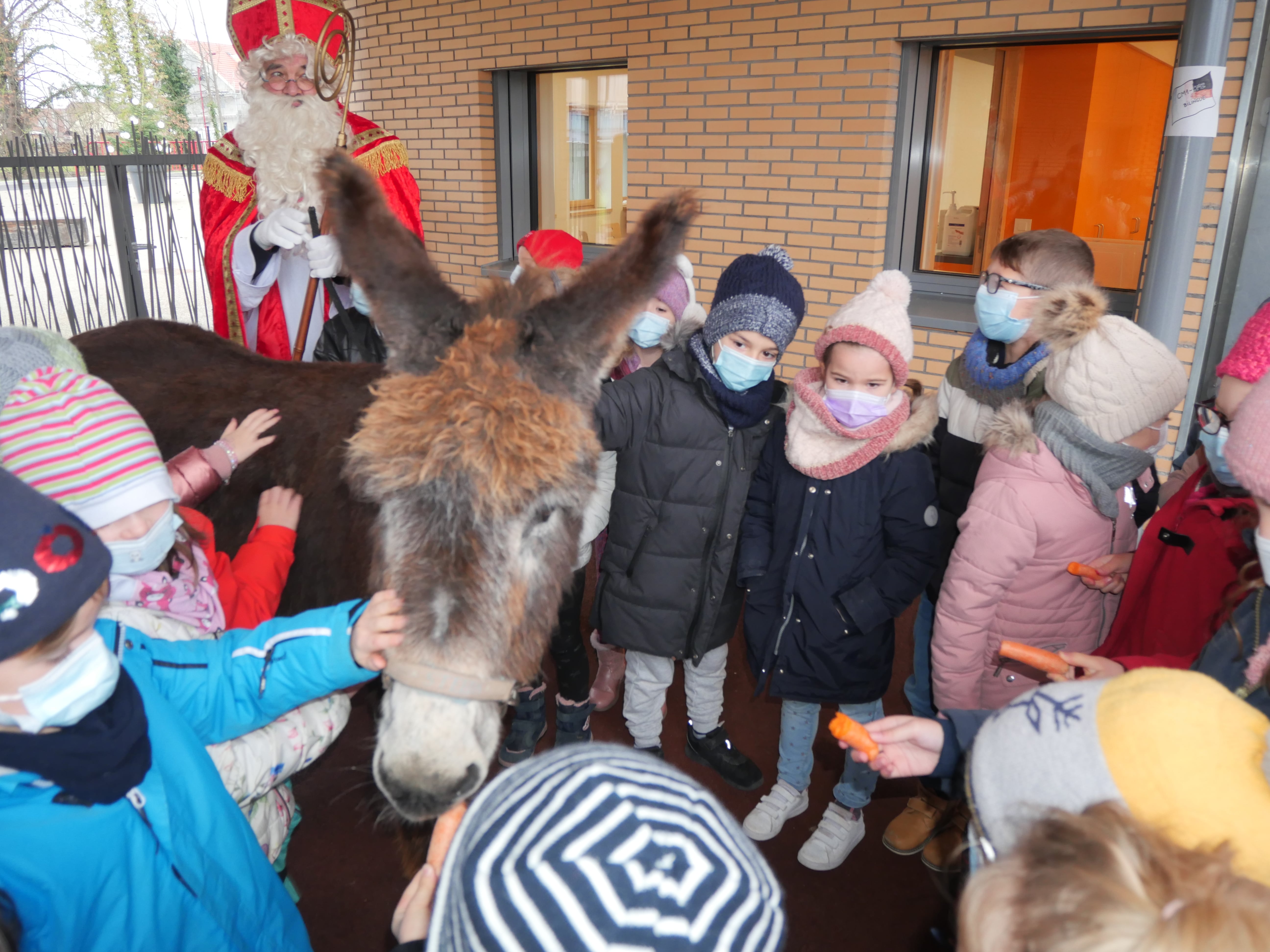 Saint-Nicolas a fait sa tournée à Plobsheim accompagné de son âne Paco. Il a fait le bonheur des petits écoliers. Il a débuté sa tournée à l’école du Moulin puis au groupe scolaire Au fil de l’eau où il a été accueilli par tous les enfants de l’école dans la cour. Chaque classe a chanté une chanson en son honneur. Les enfants ont donné des carottes à Paco, le fidèle comparse de Saint-Nicolas.  Ensuite, le cortège est arrivé à l’école du Centre sous les yeux ébahis des enfants.  Saint-Nicolas est allé dans les deux classes de maternelle pour écouter les chansons préparées par les élèves et découvrir leurs belles créations, notamment le portrait du Saint-Nicolas que les écoliers ont peint pour l’occasion.