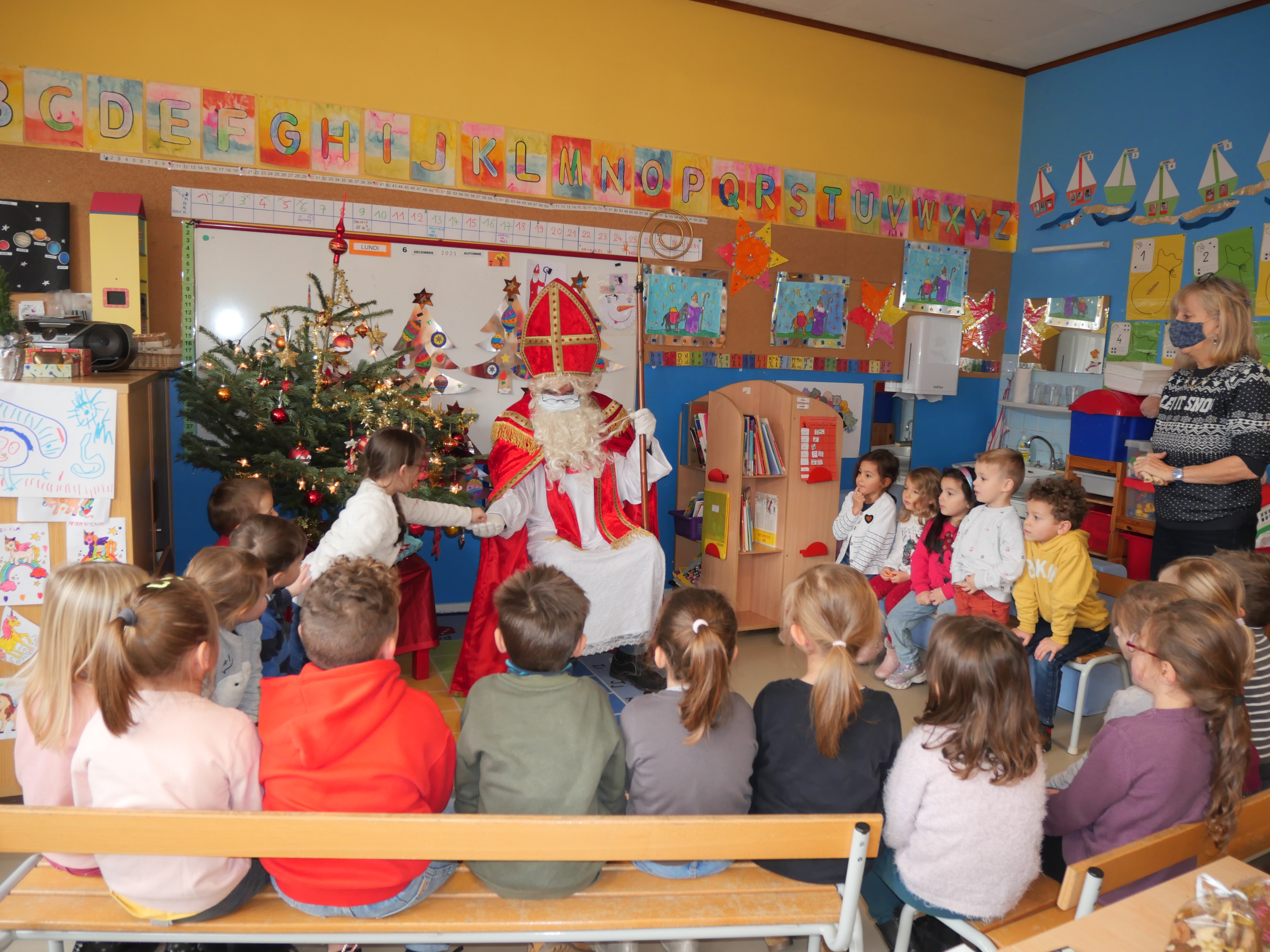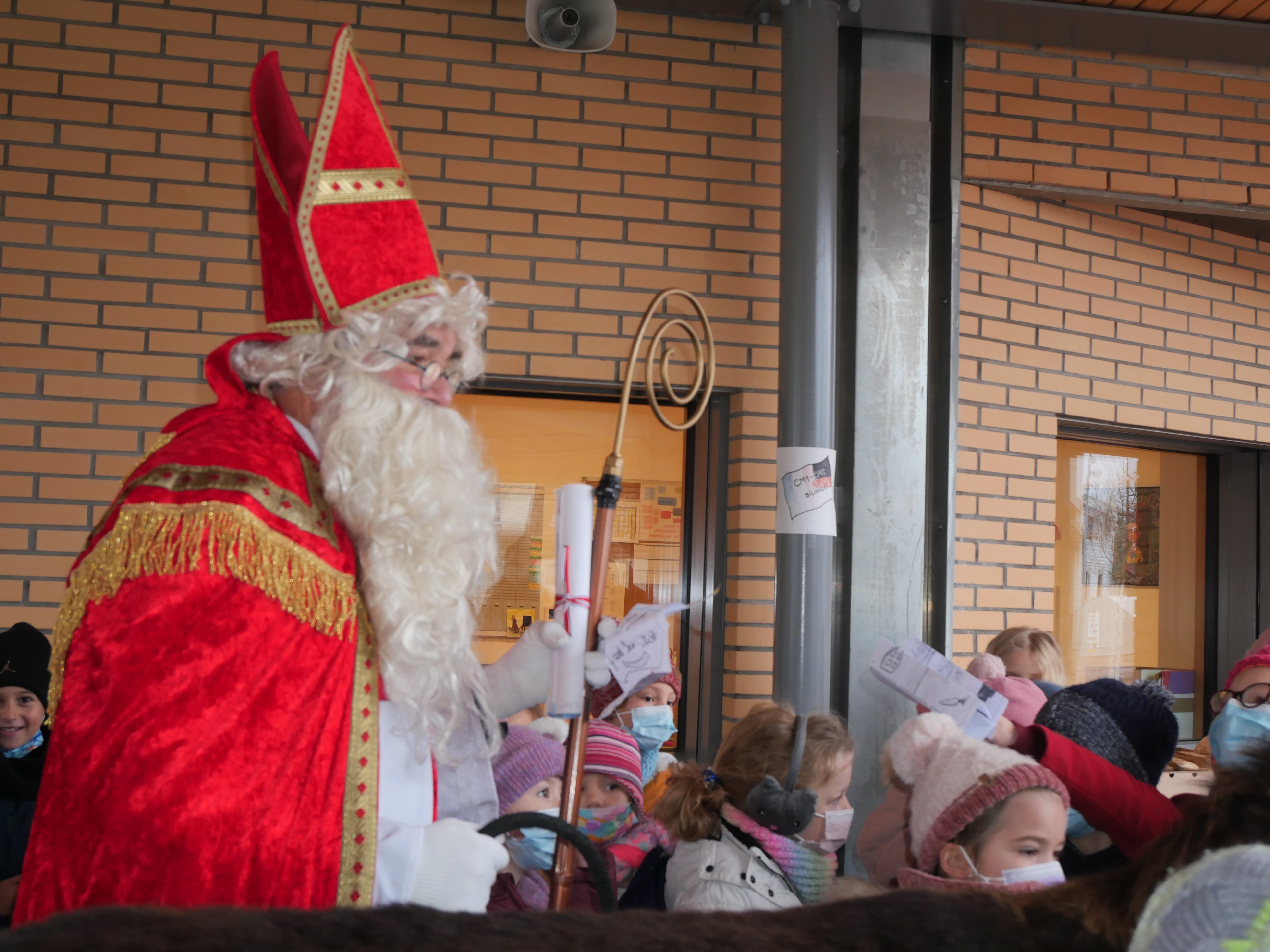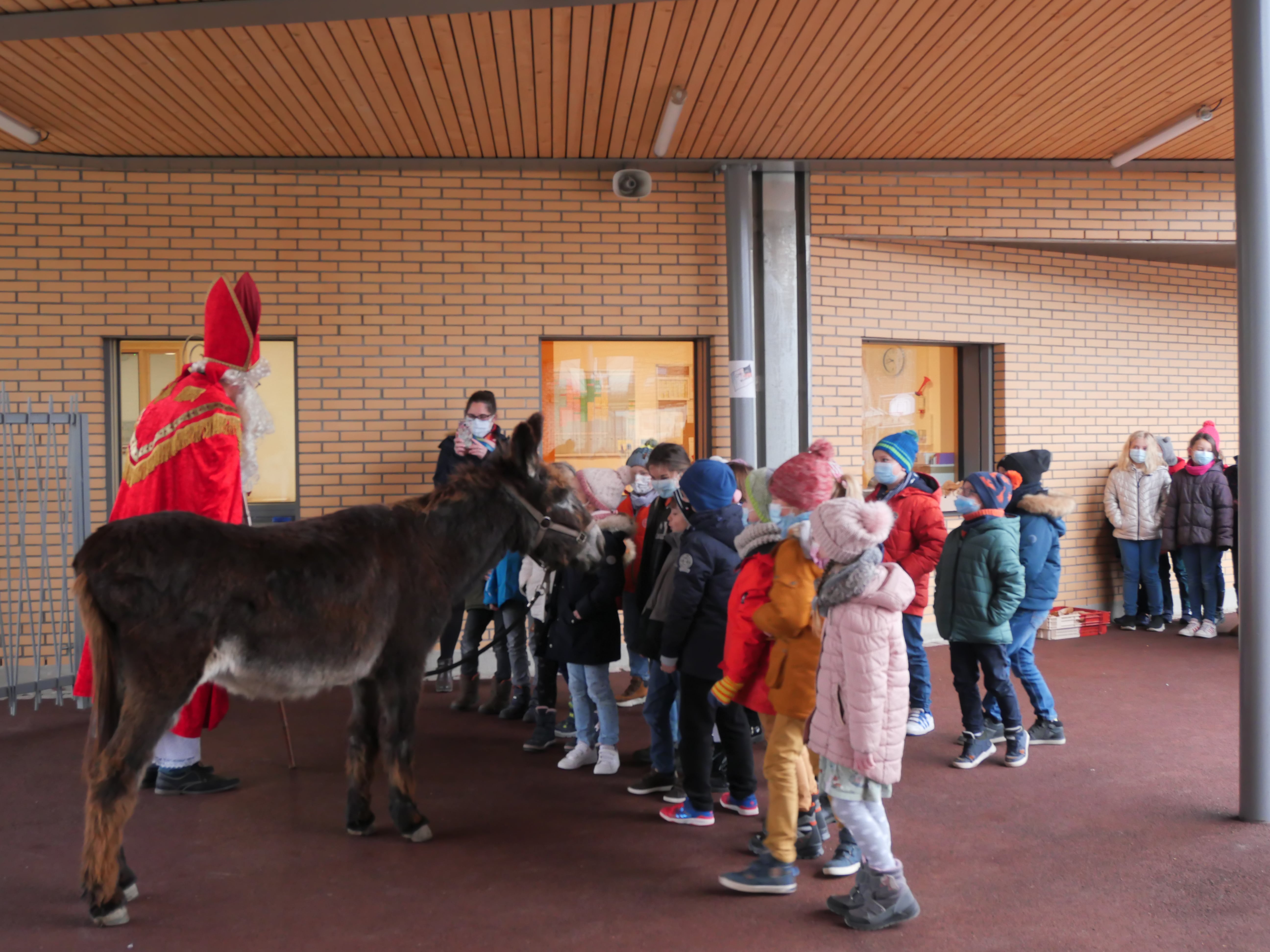 La commune a déposé des manneles pour chaque élève que le Saint-Nicolas a pu leur distribuer. Après cela, il leur a dit à l’année prochaine et a poursuivi son périple.