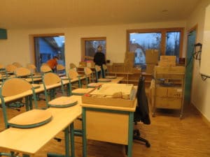 Les enseignants ont déjà pris leurs quartiers hier dans le nouveau groupe scolaire en déballant leurs cartons. Un grand merci aux agents du service technique, aux ATSEMS et aux professeurs pour leur participation au déménagement. Les élèves pourront arpenter les couloirs de leur nouvelle école dès le 4 janvier !