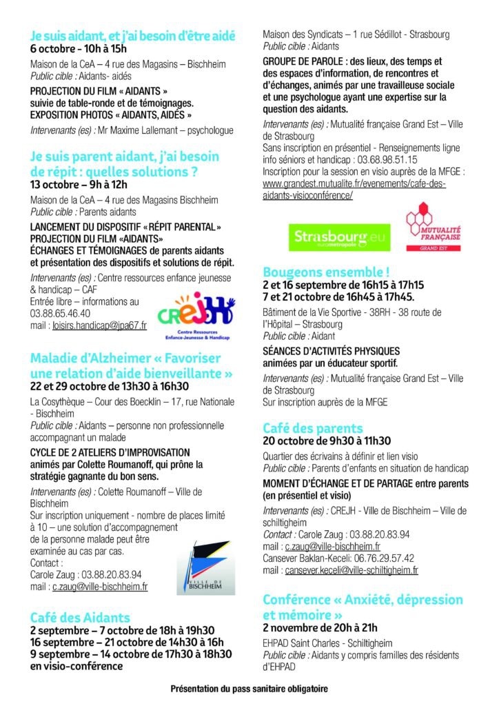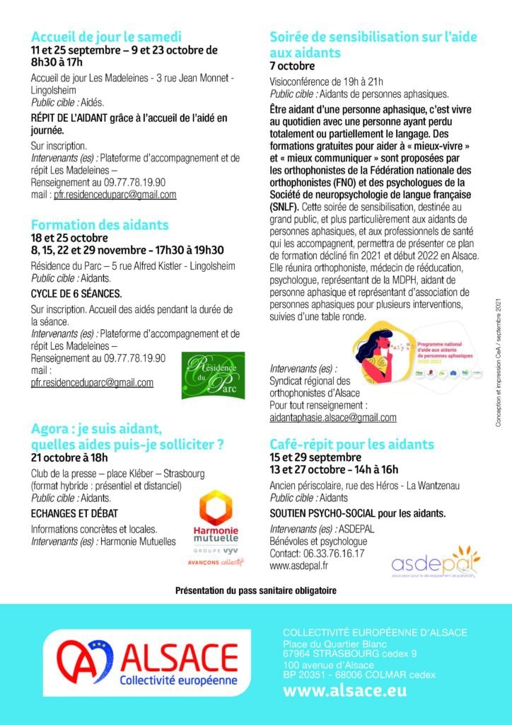 La journée nationale des aidants aura lieu le 6 octobre prochain et, dans ce cadre, la Collectivité européenne d’Alsace a souhaité déployer les « rendez-vous des aidants » sur chacun des territoires.