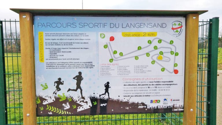 Découvrez le parcours sportif du Langensand. D’une longueur de 2 km, il compte 17 agrès placés tout au long de son tracé. Une aire de pique-nique est installée à mi-parcours.